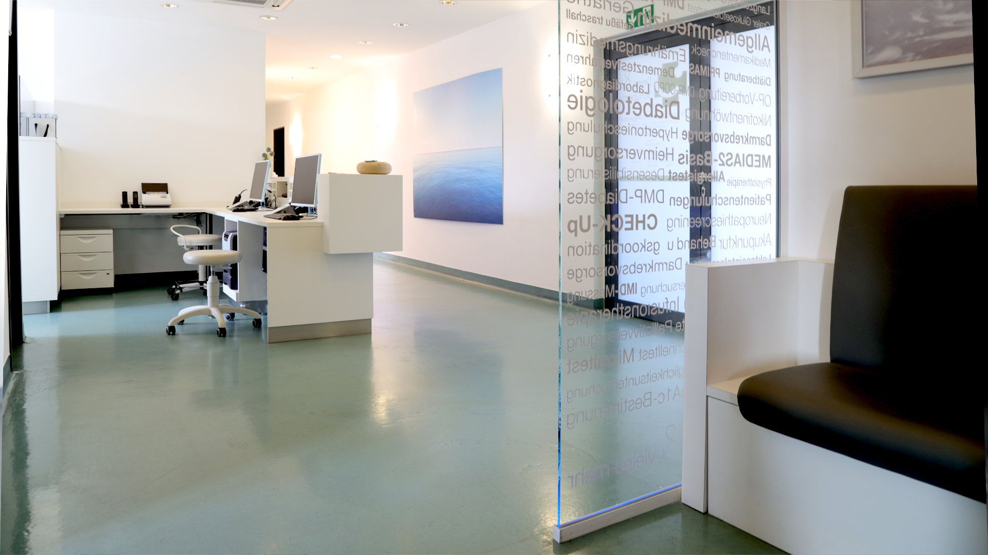 Auf 450m² Praxisfläche stehen Ihnen insgesamt 15 klimatisierte Behandlungsräume, Funktionsdiagnostik, Ultraschalldiagnostik, Ergometrie und ein praxiseigenes Labor zur Verfügung. Alle Behandlungsplätze sind mit einem EDV-Zugang ausgestattet.