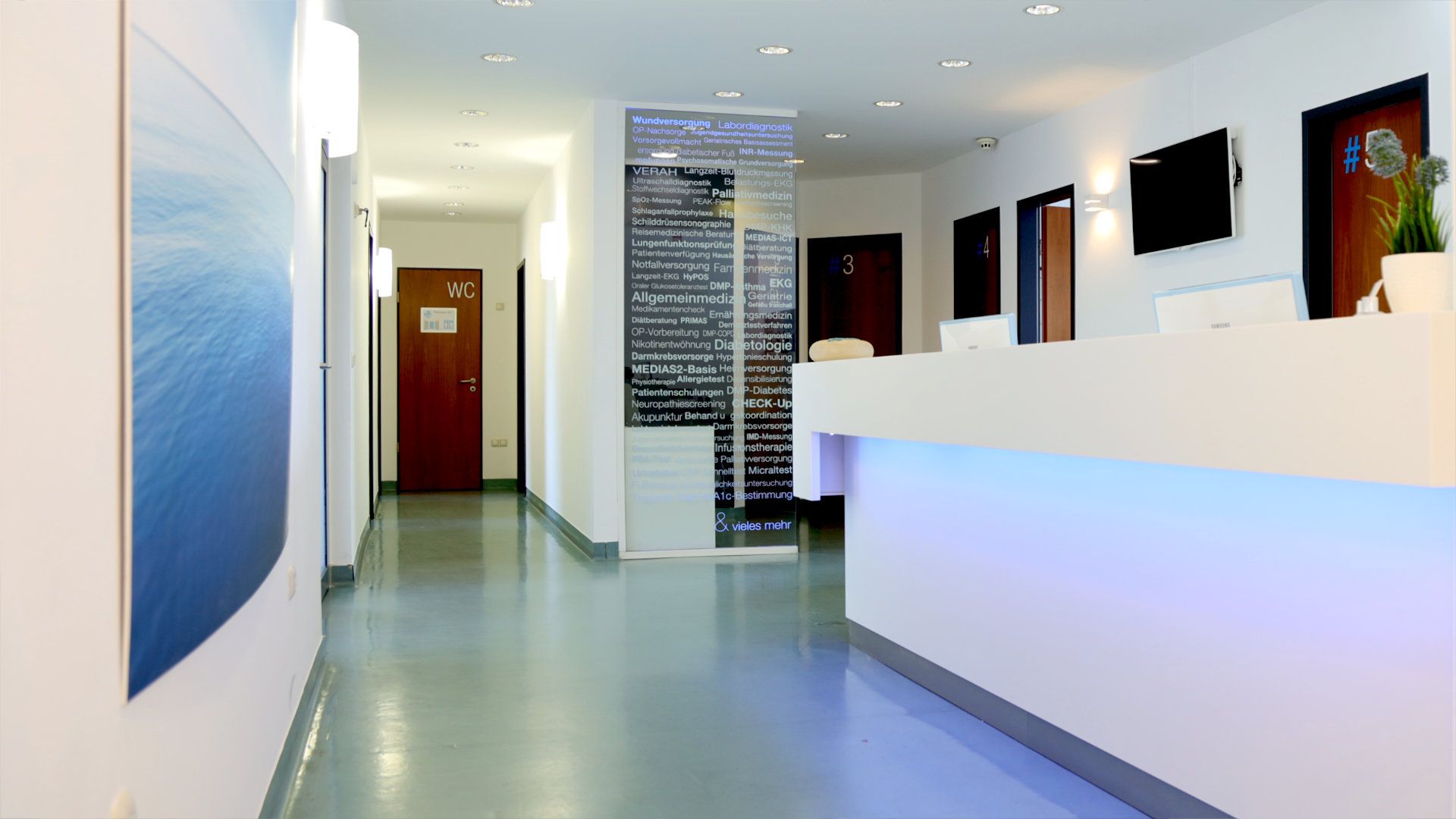 Auf 450m² Praxisfläche stehen Ihnen insgesamt 15 klimatisierte Behandlungsräume, Funktionsdiagnostik, Ultraschalldiagnostik, Ergometrie und ein praxiseigenes Labor zur Verfügung. Alle Behandlungsplätze sind mit einem EDV-Zugang ausgestattet.